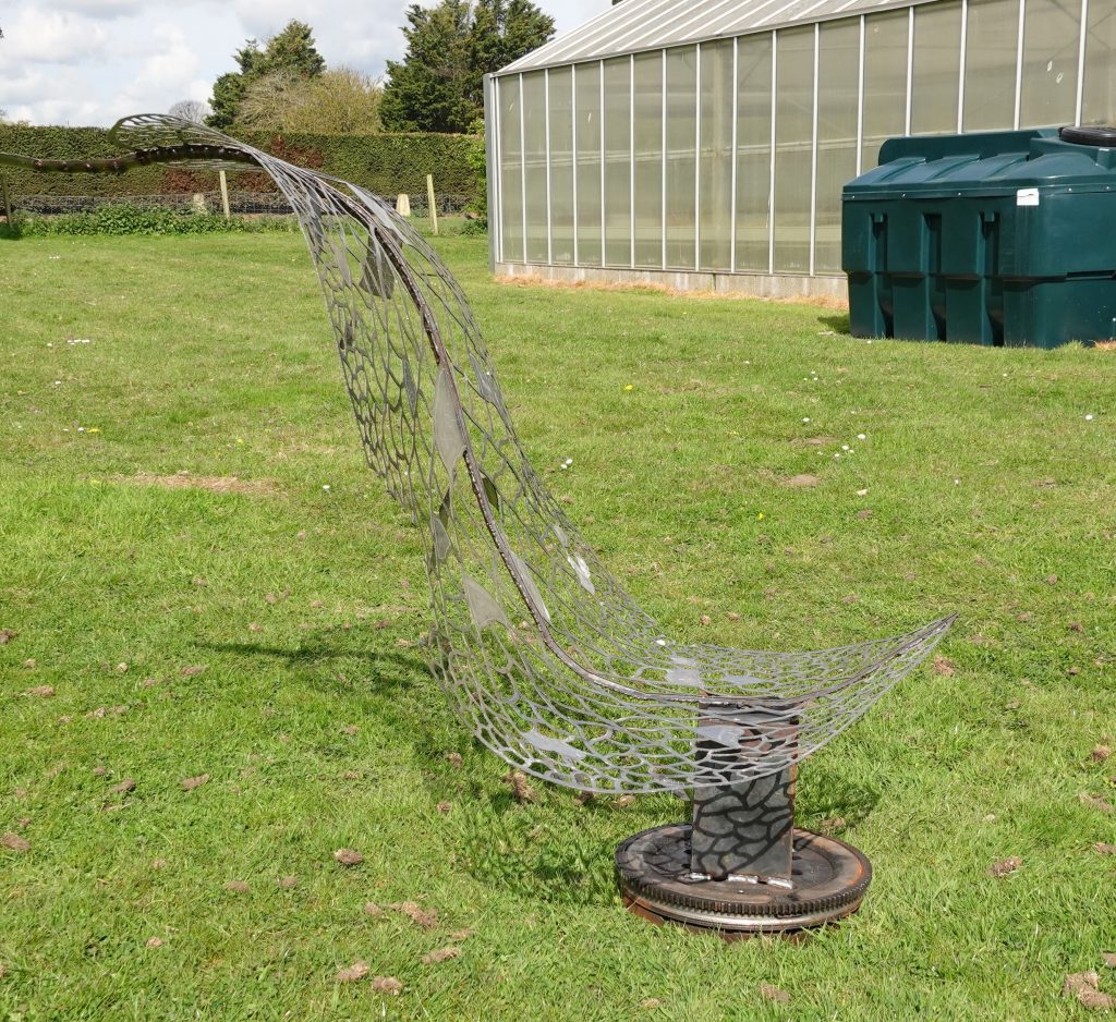 The support in the photograph is just for presentation. The leaf usually sits at ground level with a support rod set in concrete.